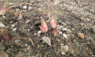 春に植えたタラの木の地下茎も、ちゃんと芽を出し