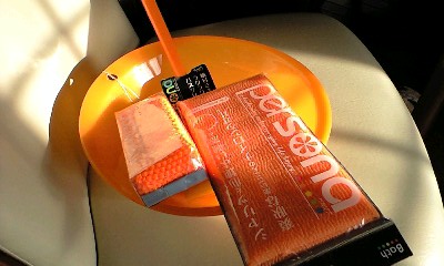 浴用タオルのオレンジがすごく、かわいい。