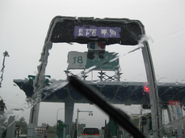 ワイパーハイにしても前が見えない、強い雨。