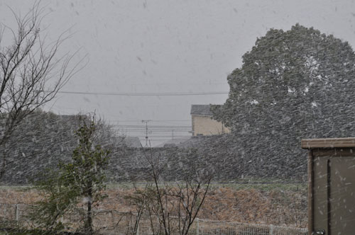 窓の外を見たら、雪が舞ってた!!。