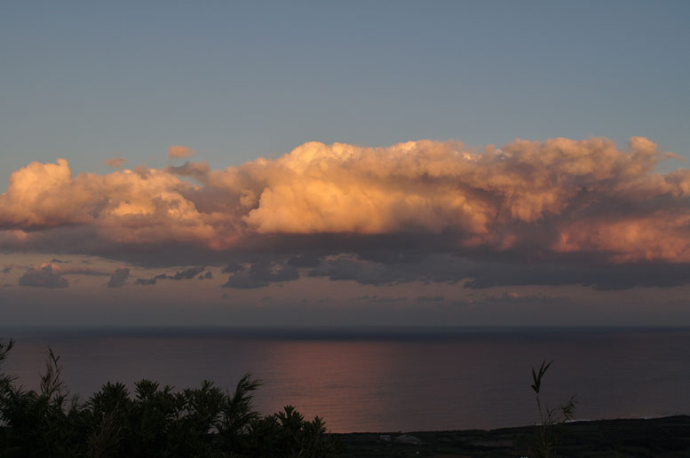 西の夕日が映って綺麗な雲になる・・・・。