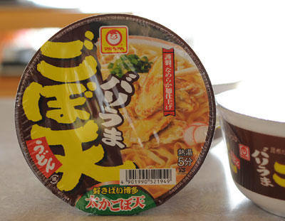 シルシルミチルで見てから食べたかった「まるちゃん・バリうまごぼ天うどん」を発見。