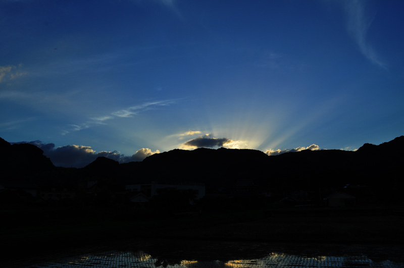 夕方は、田んぼの水に夕日が写って綺麗だった。