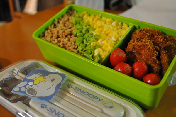 今朝はお弁当にそぼろご飯を入れたから