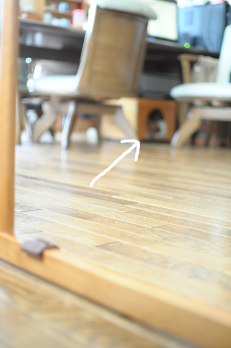 コユキのお気に入りのテーブル下はこはるもお気に入り。