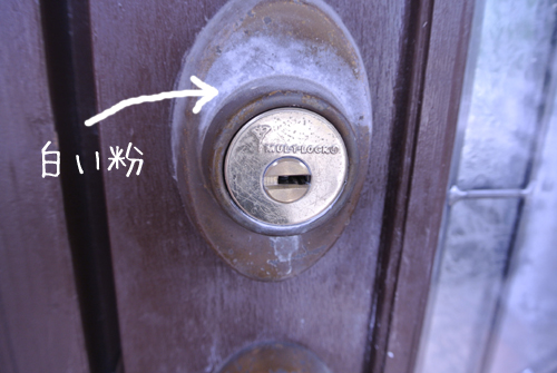 外側の鍵周りが白いのは