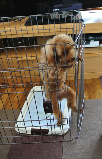 すごい恰好で脱走を図るコユキさん。
