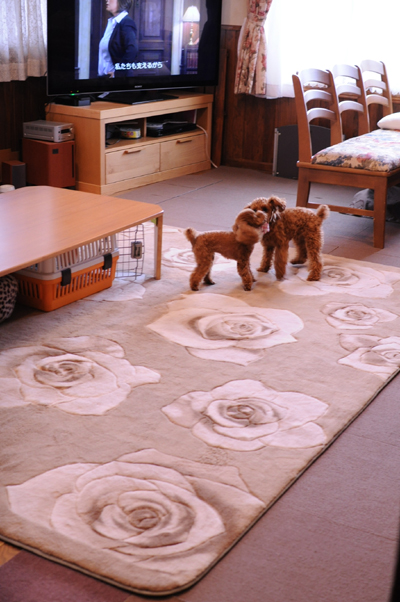 おトイレの失敗恐れてラグを片づけた。