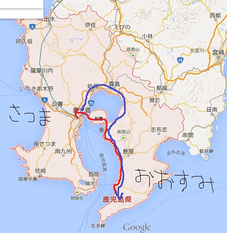 今住んでる所から鹿児島市に行くのには