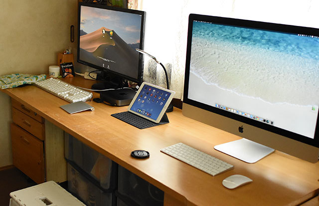 キーボードもマウスもコードレスで机がすっきり。