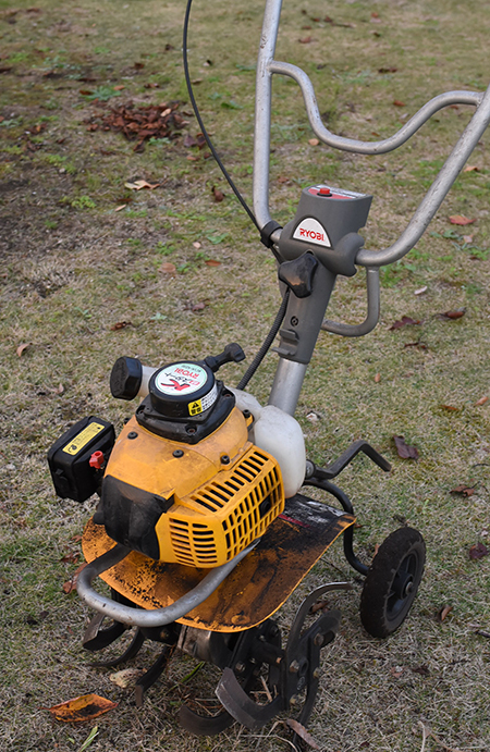 庭の花壇を深く耕して雑草や侵入した芝を除去。