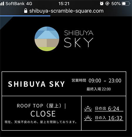 お目当ての渋谷スカイはクローズ。