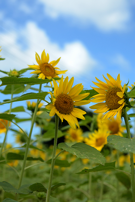 夏らしい空に『ピン』っと伸びた「ひまわりたち」が気持ちいいですね!