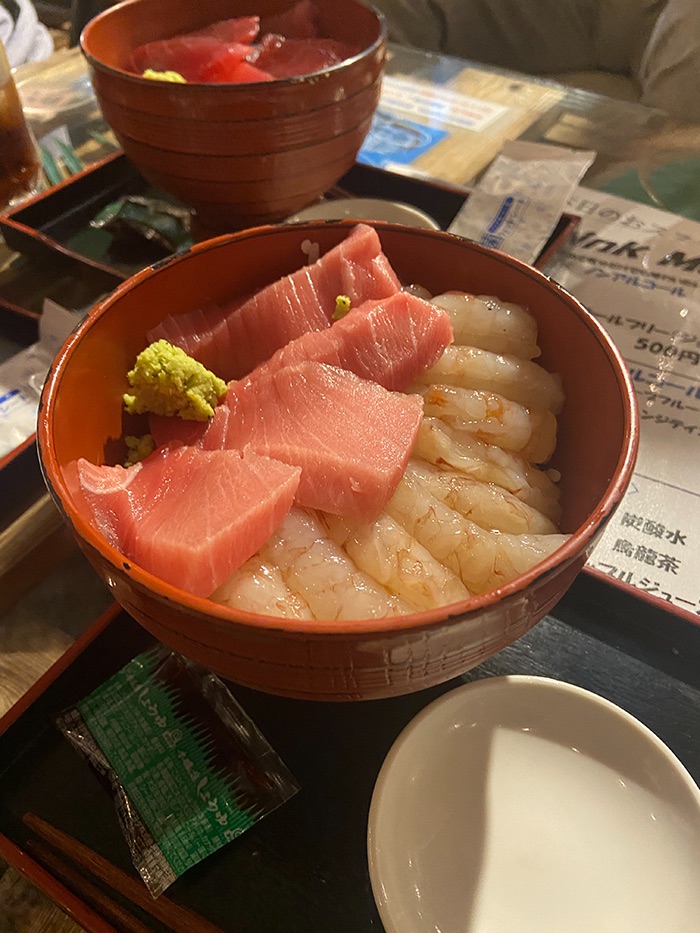 このトロとえび丼のトロが美味しくてびっくり。